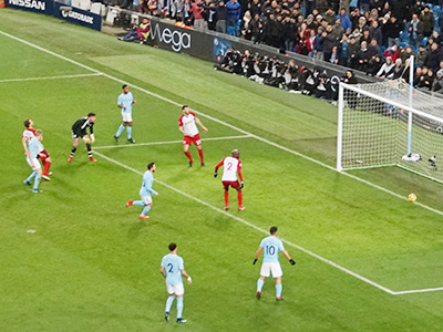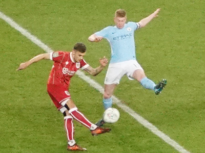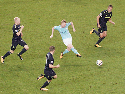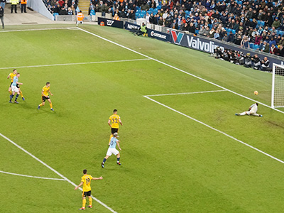 City took an early lead when De Bruyne headed a Silva cross past the keeper.