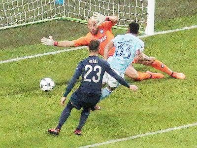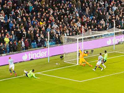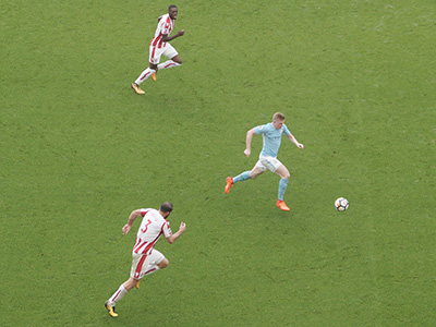 Taking a pass from Laporte de Bruyne managed to beat the keeper from a narrow angle