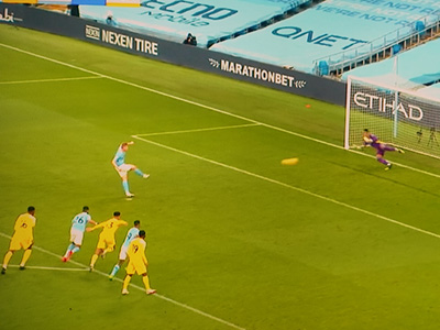 De Bruyne scores from the spot after 20 minutes