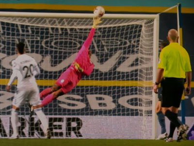 A great save by Edison from a header