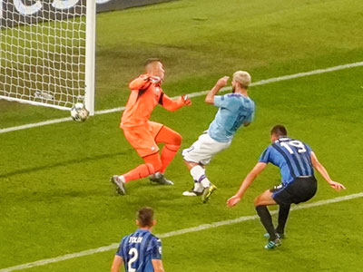 Aguero manages to get a Foden cross into the net