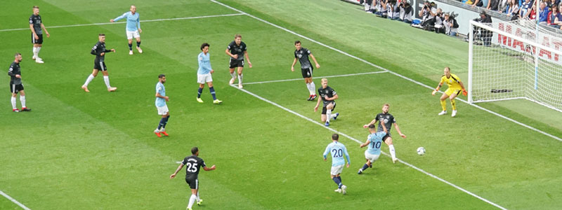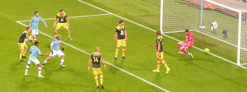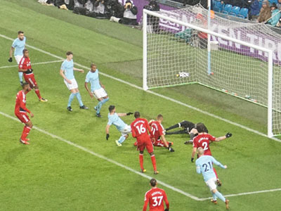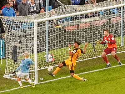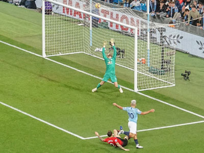 On 20 minutes a header from Foden finds Aguero who shoots past the keeper to give City the lead
