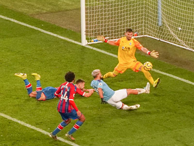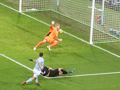 Aguero hits a Walker cross through the keep's legs to level the scores