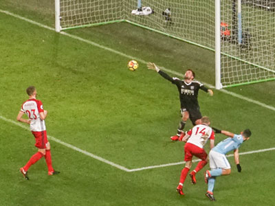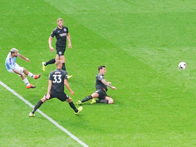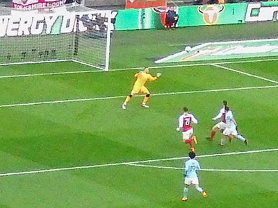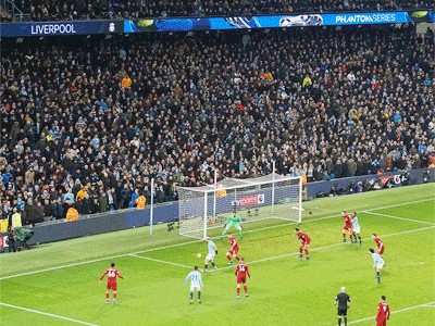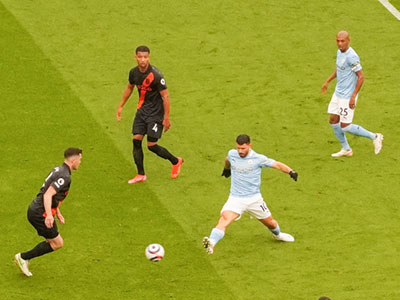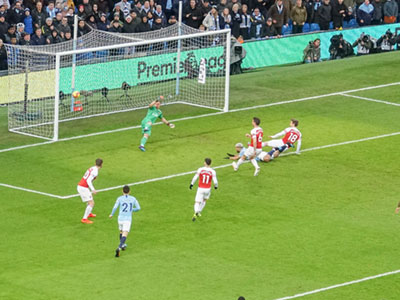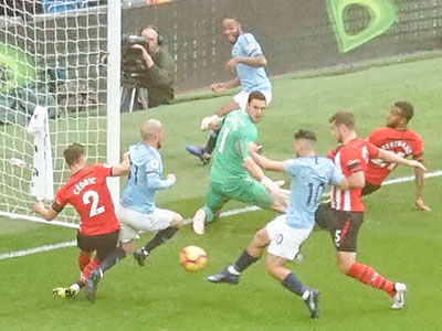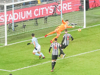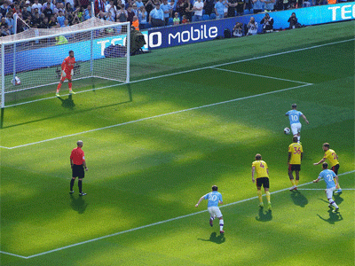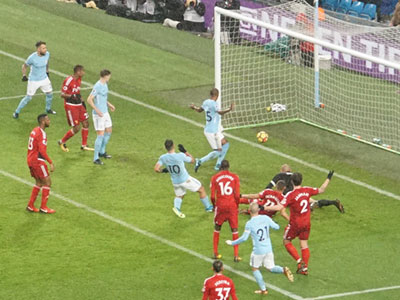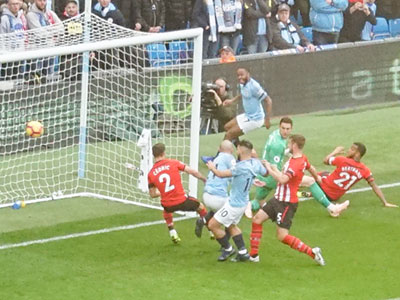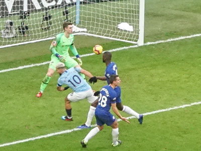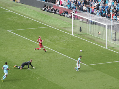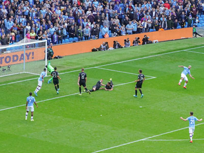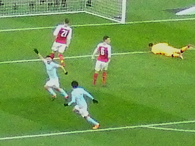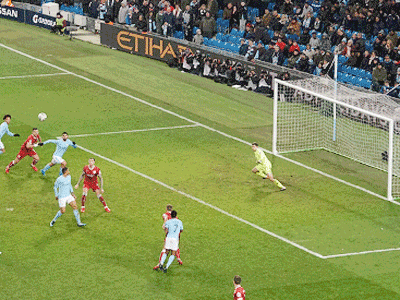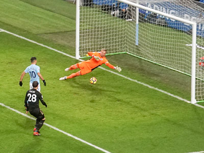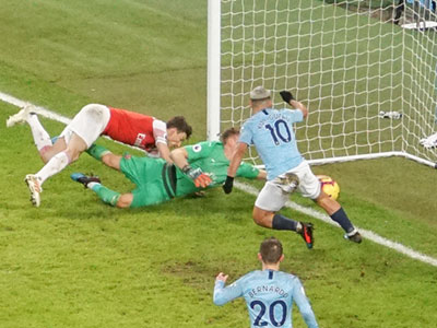 On 35 minutes a cross by De Bruyne is met by Aguero to slot the ball past the keeper and City go ahead again