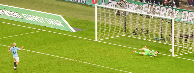 Mahrez is brought down by the keeper and Aguero scores from the spot to make it two nil after 7 minutes