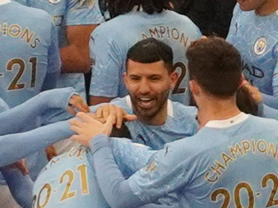 Aguero and Mendy dance to celebrate