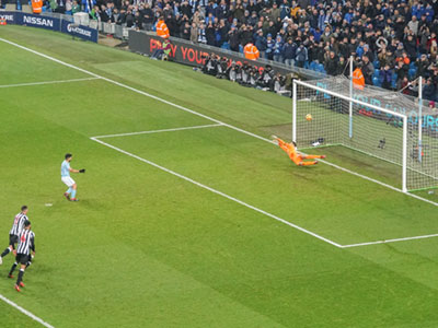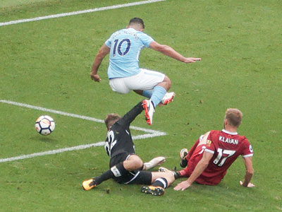 Sergio gives City the lead from the spot after Benardo was brought down