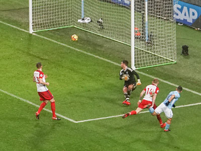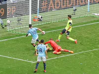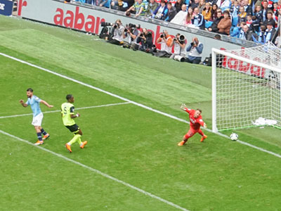 after 18 minutes Aguero chips the ball over the keeper to give City the lead