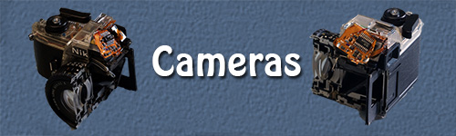 Rapid Regula, Practica SLR, Robot Royal, Hasselblad, Pentax Spotmatic, Pentax SV, Mamoya 67 Nikon F, 2 x Nikon F3, 2 x Mamiya 645, 2 x Nikon FE, Nikon FE2, 2 x Nikon F4