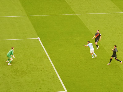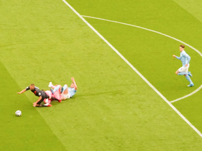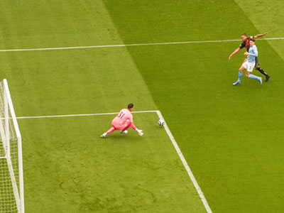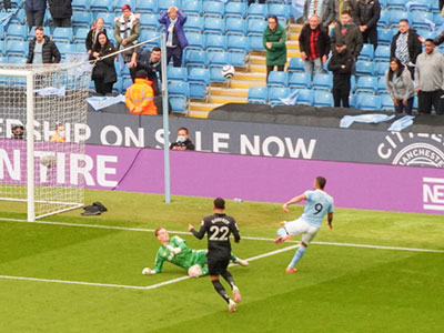 A few minutes later Jesus takes a pass from Kevin and makes it two nil - great stuff by City