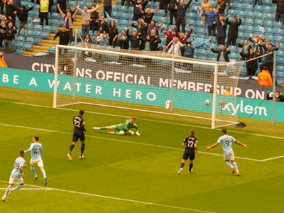 An error by Zinchenko gave Everton a chance to reduce the lead and Dias tried to stop Richarlison but brought him down in the penalty area. Thankfully for City Ederson made a brilliant save and City were two up at half time. Phil Foden approaching his 21st birthday then made it three nil early in the second half and then came the moment we were all waiting for - Aguero on for Mahrez on 65 minutes and what a welcome he had.