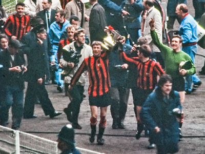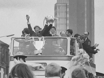 Colin with the FA Cup at the end of the win against Leicester at Wembley in 1969
