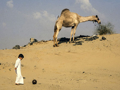The youngster was really 'humped ' when the camel refused to kick the ball!