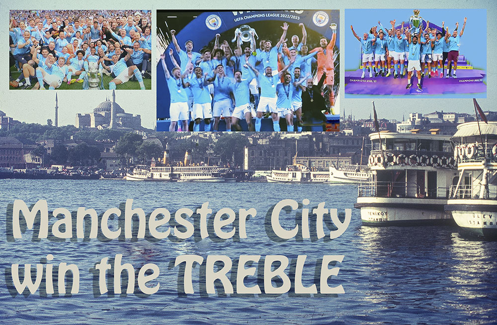 With two minutes to go Ederson made a brilliant save at a corner. The defensive battle continued into the 6 minutes added time until the referee from Poland blew for full time and City had won the match and the special treble - The Premier League, the FA Cup and now the Champions League -