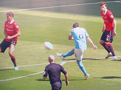 On 78 minutes came the controversial moment. Casemiro passed to Rashford who was well offside and before the law changed the linesman would have raised his flag and City would have had a free kick. Oh no not now - because Rashford never actually touched the ball which ran on for Fernandes who scored. The linesman did raise his flag and the 'event' went to VAR. A goal was given despite the attention and reaction that both Ederson and Akanji would have had when Rashford was so offside.