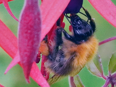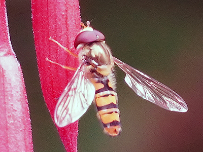 I don't go out very much now so all pics are taken in my garden. I try to capture an insect of any size on a plant. I also try to capture an aircraft overhead!