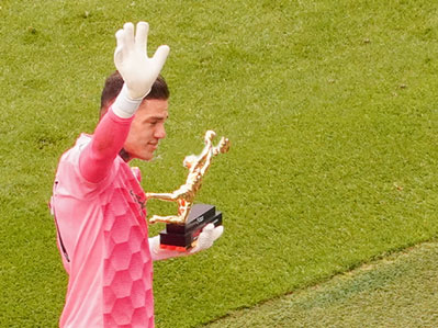 Ederson collects his goal keeping award