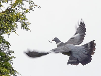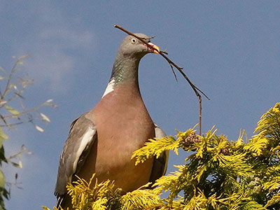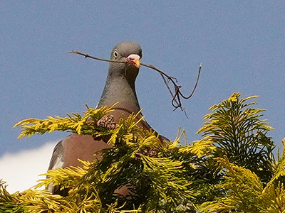 Pidgeon number 354265 is building a nest in a tree at the bottom of my garden!
