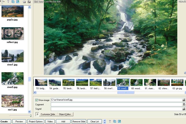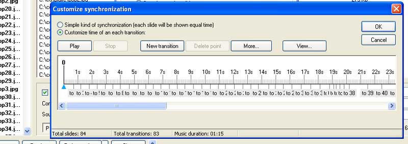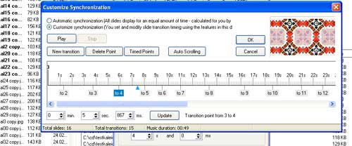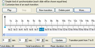 the transitions (a very wide range) and duration of image and transition.