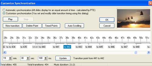 shows the new graphic audio display of PTE .You can now match exactly the slide