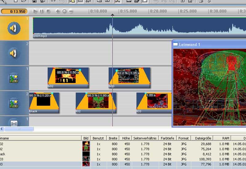 audio and image tracks and each image will have extensive masking, panning and