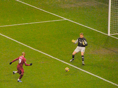 Before the half hour Eduardo hooked the ball past Hart to make it two nil