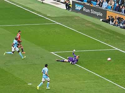On 16 minutes Mata passes to Rashford who beats Demichelis too easily and he then shoots past Joe Hart to give United the lead