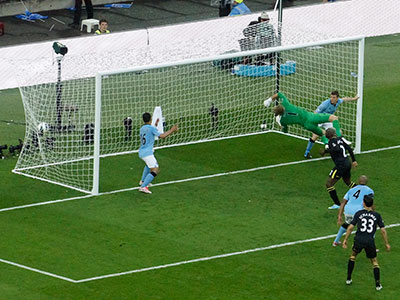 City came back in the second half with goals by Kolarov and Aguero (above left) but alas despite lots of effort we were out of the FA Cup. At least we had done the double over United in the League and we ended up Champions of the Premiership