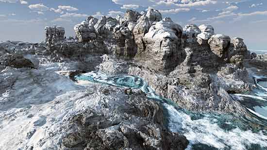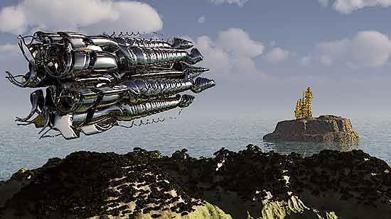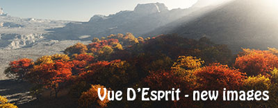 The images below have been rendered in version 11 of Vue D'Esprit. Some are part of animations and a few have original render times of over 24 hours ( over 75 billion polygons ).
