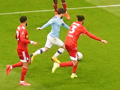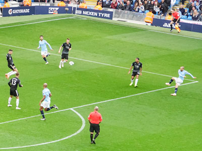 After 84 mins Silva passes to Fernandinho who hits it first time into the net