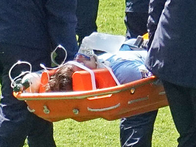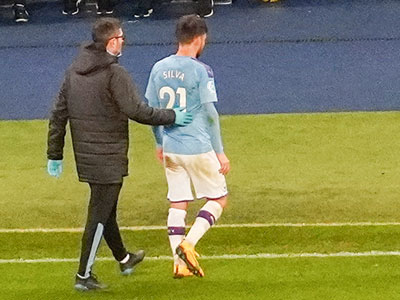 On 68 minutes Silva was injured and treated on the field for 8 minutes before a stretcher was called for
