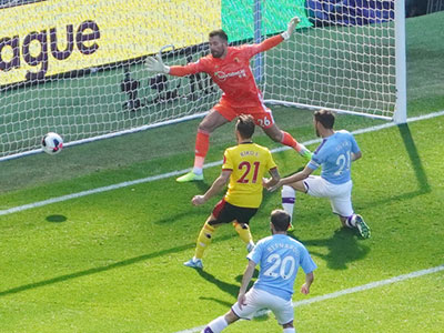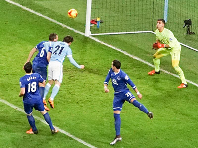 On 26 minutes Silva hooks the ball past Gomes to put City one up