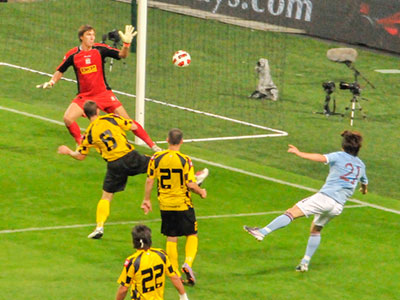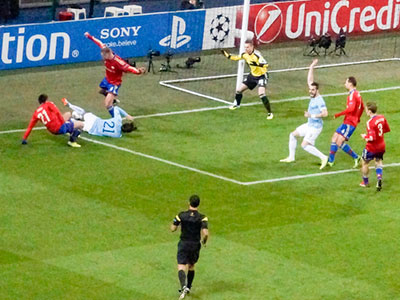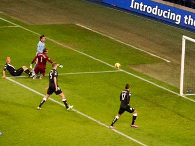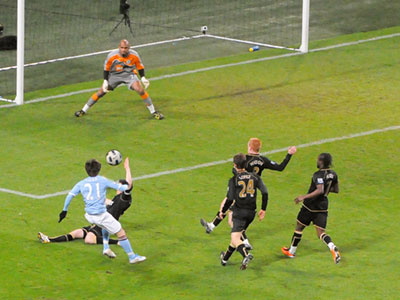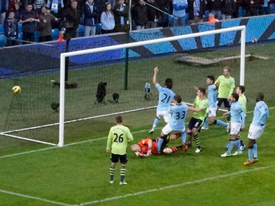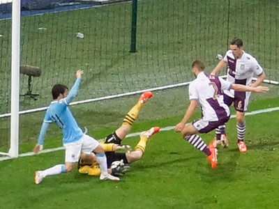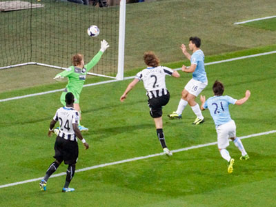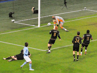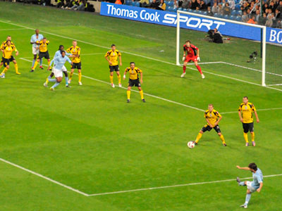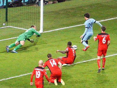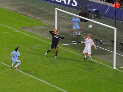 On 60 minutes a cross from Kolarov is hit first time past Speroni for two nil