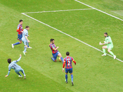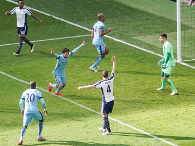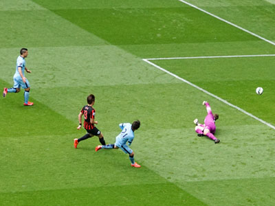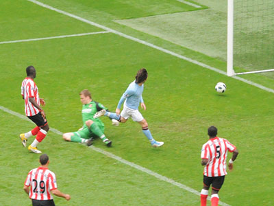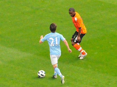 On 37 minutes Silva took a pass from Viera and he cut in and shot past Al Habsi to score his first league home goal