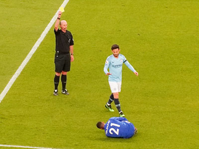 Shock! Horror! David gets a yellow card - probably because Tielemans had his number on his shirt!