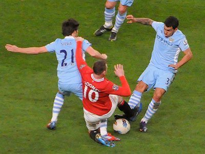 Silva is brought down by Phillips and Aguero scores from the penalty to complete a hat-trick