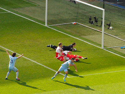 In the first two minutes a poor headed clearance dropped to Silva who shot past the keeper for his 7th of the season and his 50th for City