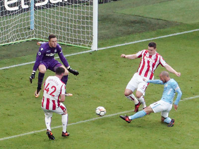 In first half added time a Bony shot is blocked but Silva is at hand to score