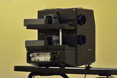 A semi professional unit for two projectors was the electrosoinc ES69. It was primarily used for industry and education as was its larger brother unit ES3609 which also had a tape recorder and loudspeaker. They were very reliable and I still have a working model.