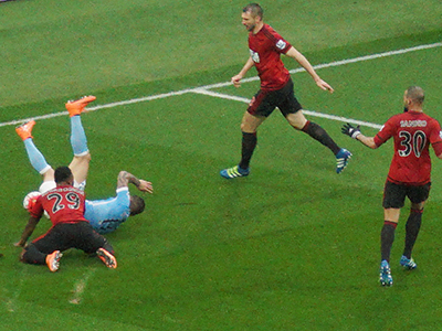 Hart saving from Ibrahimovic - 14 shots taken at 11 frames per sec