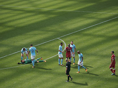 Turning point in the game was the collision between keeper Ederson and Mane - who was sent off.